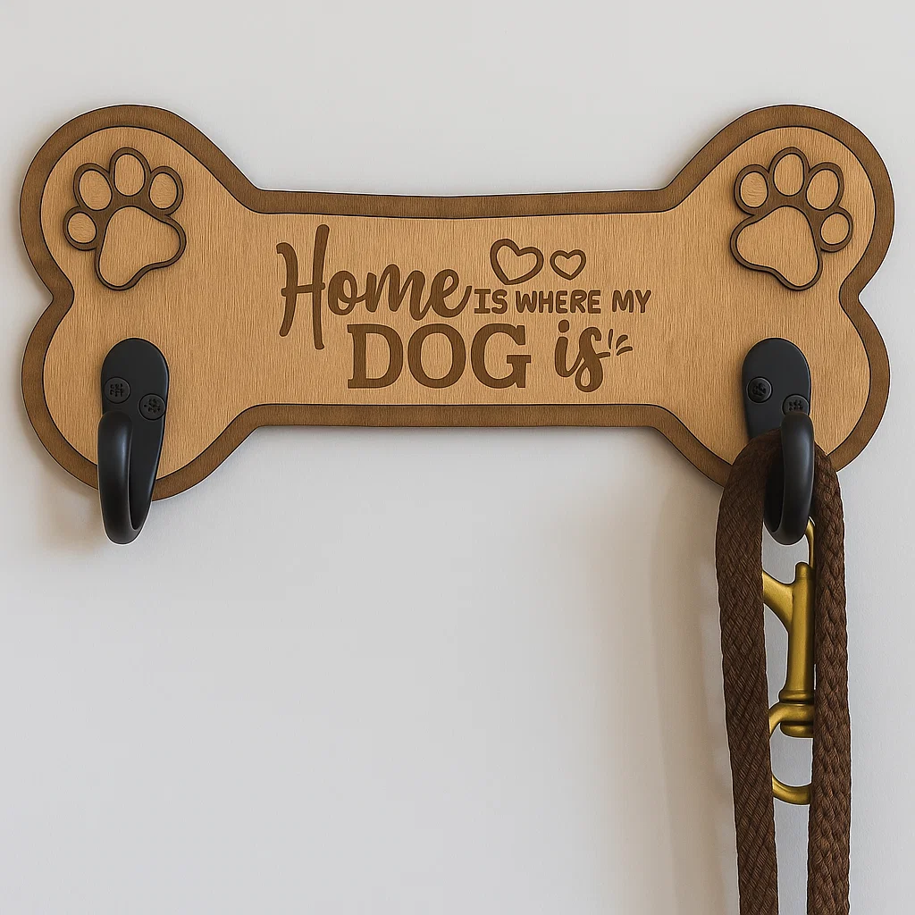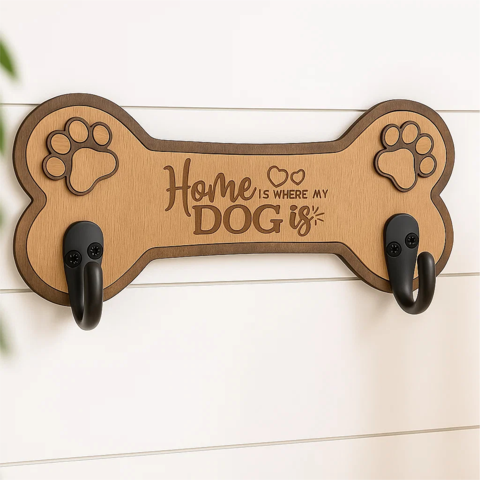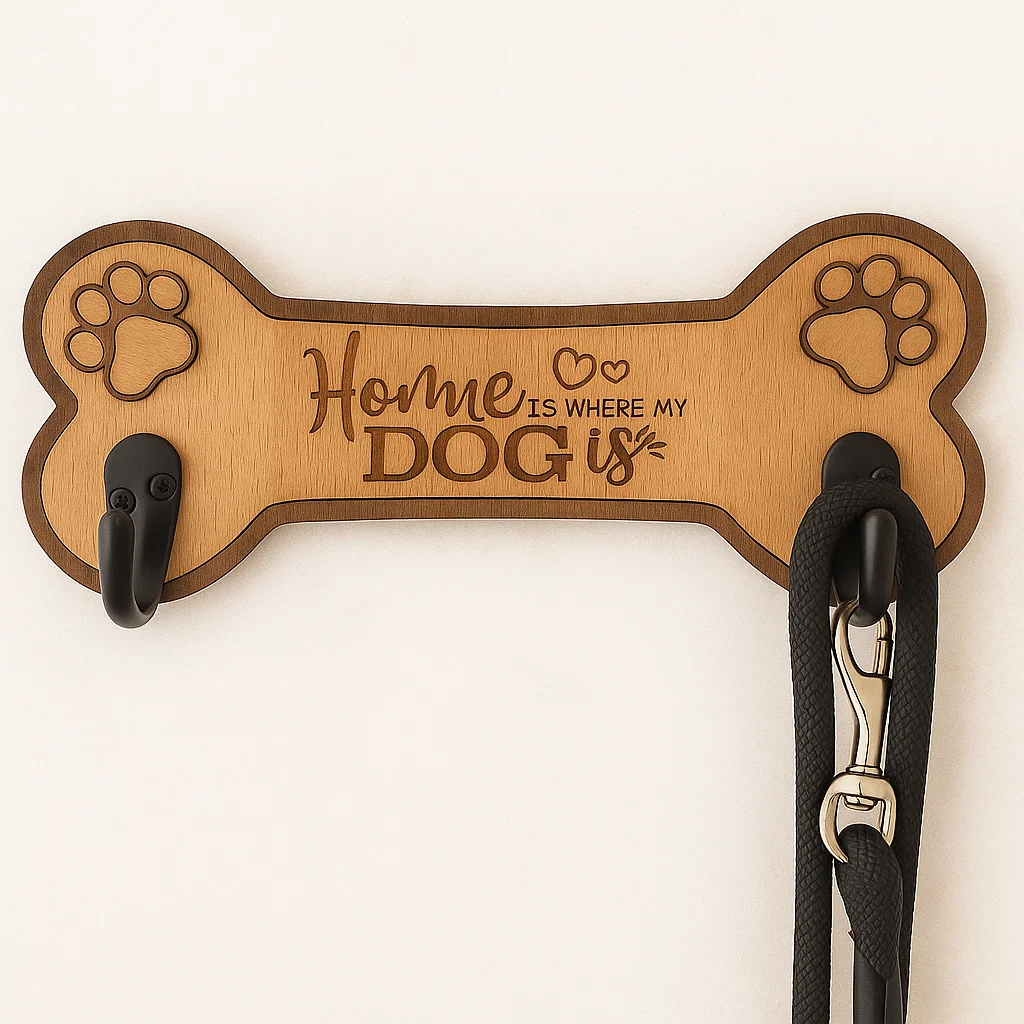 Handcrafted from premium wood and shaped like a classic dog bone, this wall hanger is engraved with “Home is where my dog is” for a playful yet meaningful touch. Finished with care, it’s as decorative as it is practical.