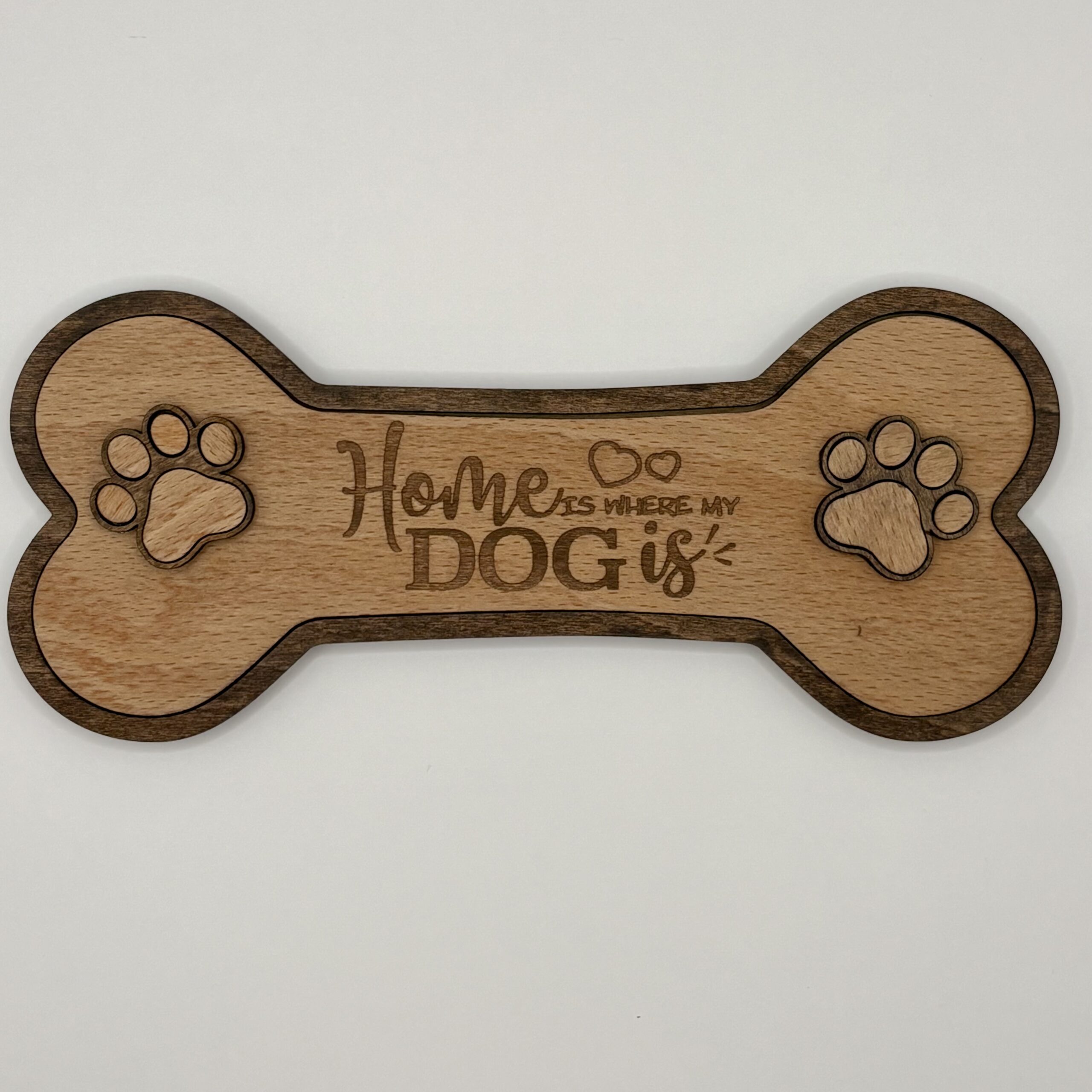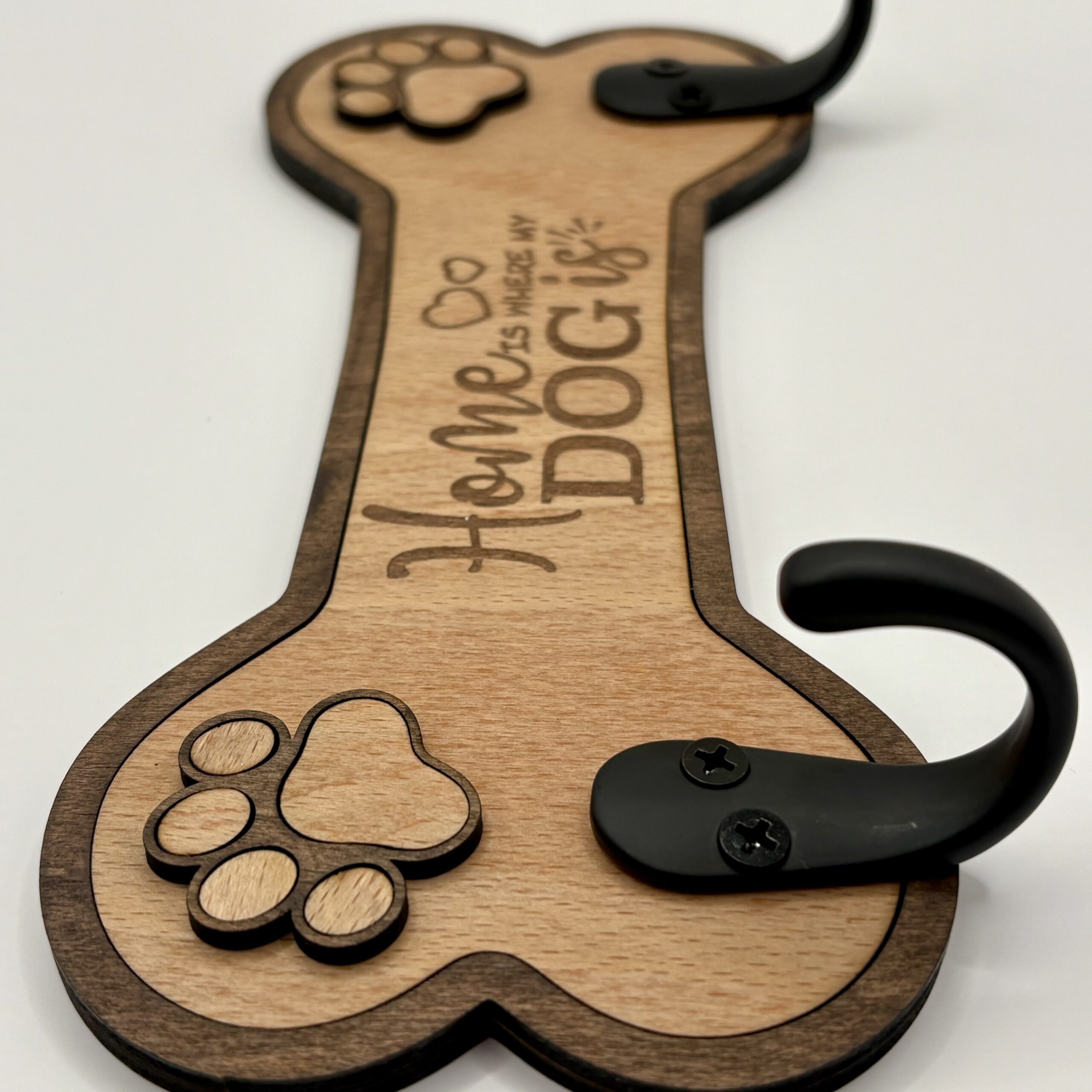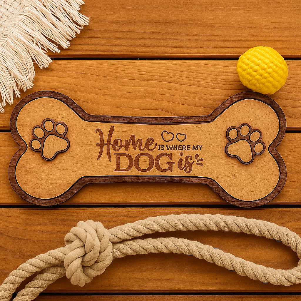 Handcrafted from premium wood and shaped like a classic dog bone, this wall hanger is engraved with “Home is where my dog is” for a playful yet meaningful touch. Finished with care, it’s as decorative as it is practical.