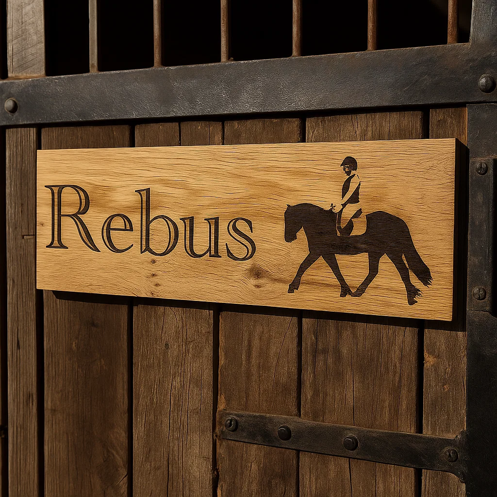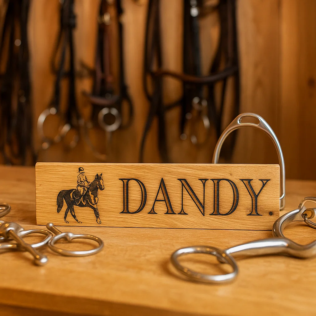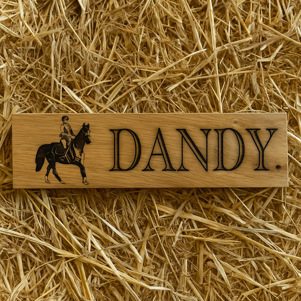Personalised Horse Stable Sign with Image – Handcrafted in Oak